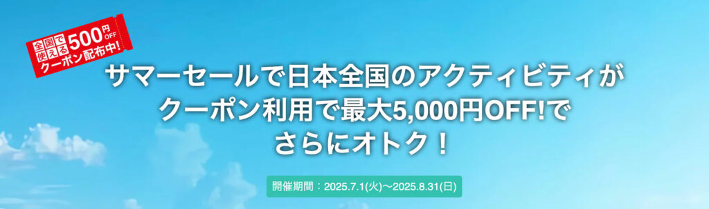 次は、アクティビティジャパンのクーポンの特徴を解説してから、リピーターも使える実施中のキャンペーンも紹介していきます!
