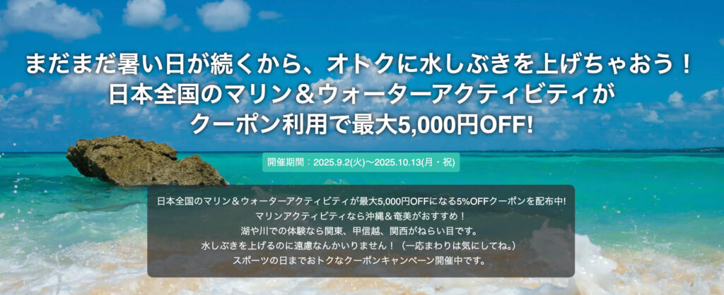 アクティビティジャパンのクーポン・実施中のお得なキャンペーン一覧