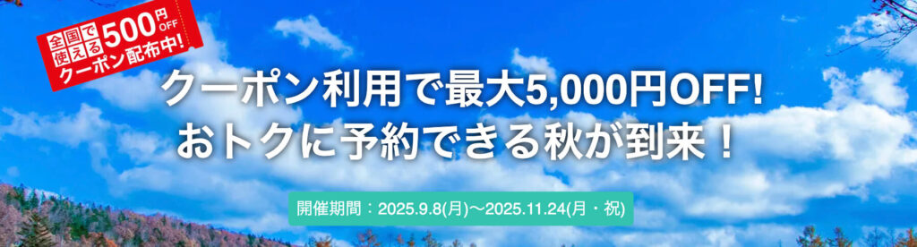 秋限定キャンペーン 最大5,000円オフクーポン【25/11/24まで】