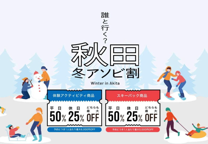 秋田冬アソビキャンペーン|50%OFFクーポンコード【26/2/28まで】