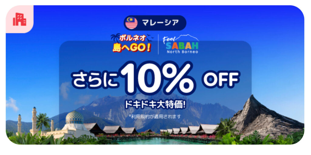 Agodaボルネオ島が通常のキャンペーン価格に加えさらに10%オフでお得になるキャンペーンが実施中!