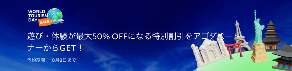 遊び・体験が最大50% OFFキャンペーン!【25/10/8まで】