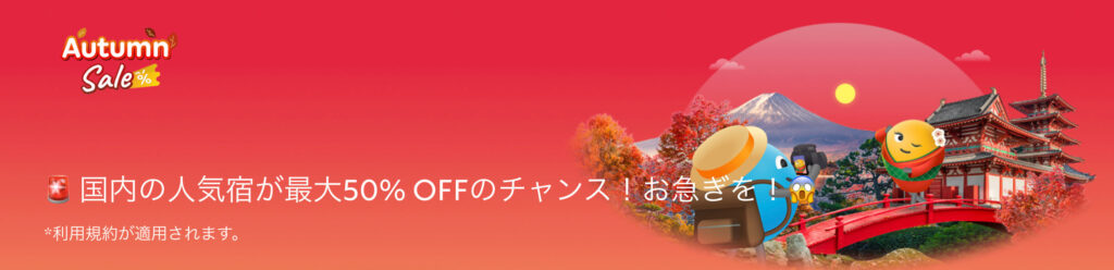 国内の人気宿が最大50% OFFのチャンス!【25/11/9まで】