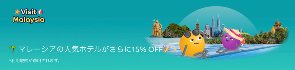 マレーシアの人気ホテルが通常のキャンペーン価格に加えさらに15%オフでお得になるキャンペーンが実施中!
