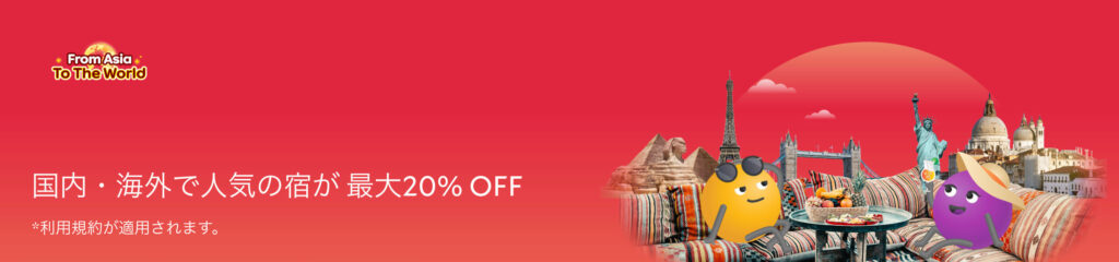 Agodaで国内・海外で人気の宿が 最大20% OFFでお得になるキャンペーンが実施中!