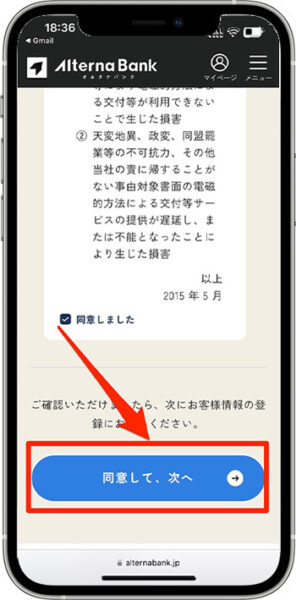 - 各項目をチェックし、全て『同意しました』にチェックを入れます。