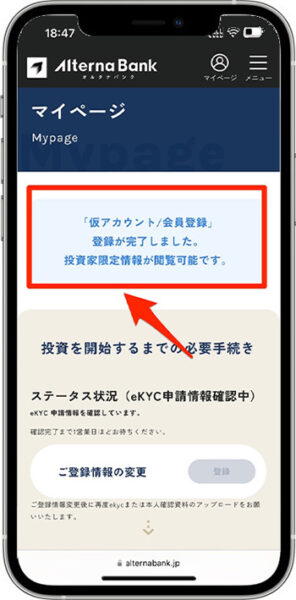 かず審査に通り、『本人確認キー』を入力したら、オルタナバンクで投資ができるようになります!
