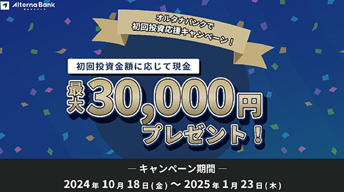 オルタナバンクへの初回投資で現金3000円プレゼントキャンペーン【26/1/31まで】