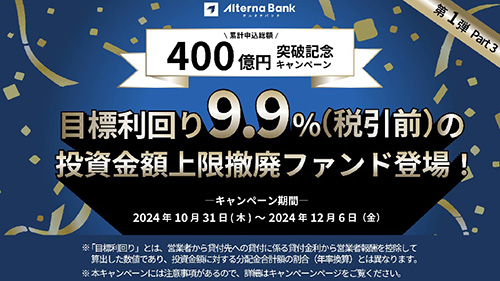 オルタナバンクの累計ファンド申込総額400億円突破記念キャンペーン!