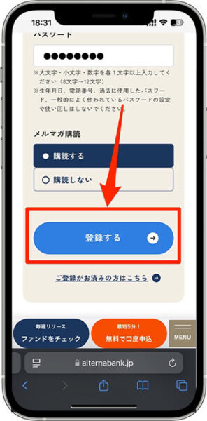 オルタナバンクでキャンペーンを利用して新規登録する流れは上記の通り。