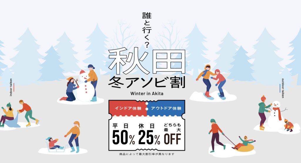 秋田の冬アソビ割最大50%オフキャンペーン【25/2/28まで】