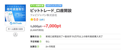 - ビットトレードの口座作成&条件達成:7,000円分のポイント