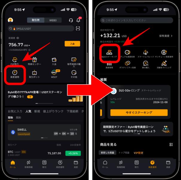 Bybitの口座開設を済ませた後は、入金方法と取引方法を解説します。