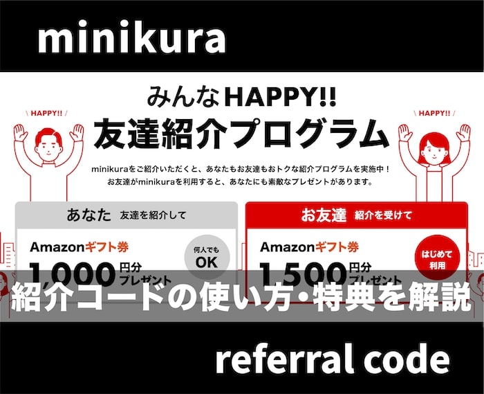 【11月最新】minikura(ミニクラ)の紹介コード・キャンペーンで1,500円分のAmazonギフト券がもらえる!