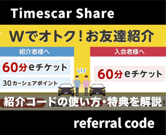 【11月最新】タイムズカーシェアの紹介コード・キャンペーンで60分eチケットがもらえる!
