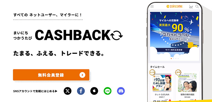 コインカム | 副業評判ランキング コインカム (COINCOME) は、オンラインショッピングやゲーム、アプリダウンロード、旅行予約などを経由してポイントを獲得できるキャッシュバックサイトです。