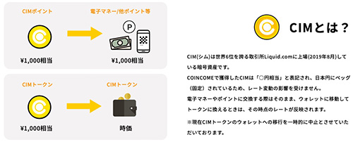 コインカムで貯めたポイントはそれだけでなく『CIMトークン』という仮想通貨にも交換ができます。