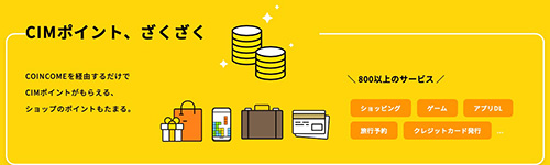 コインカムは『CIMポイント』というポイントを、ショッピングやゲーム、旅行予約などさまざまなサービスを利用することで貯められるポイントサイトです!