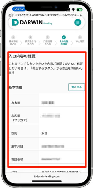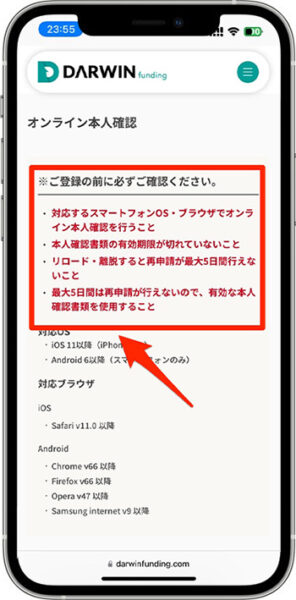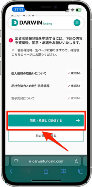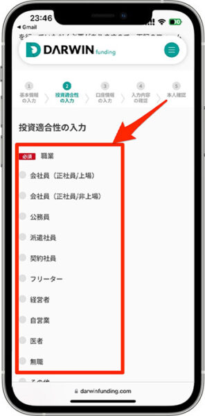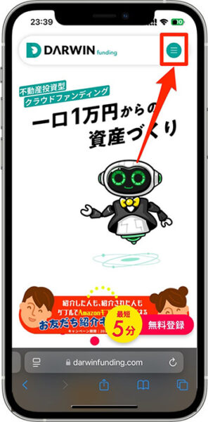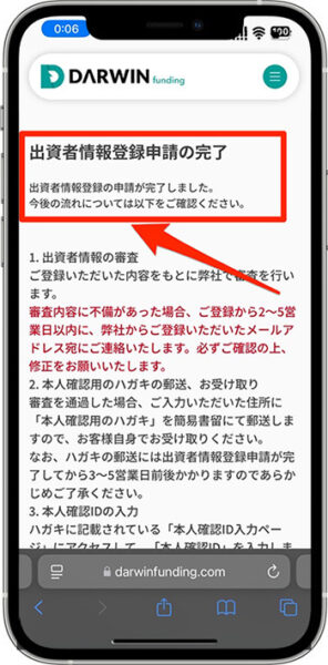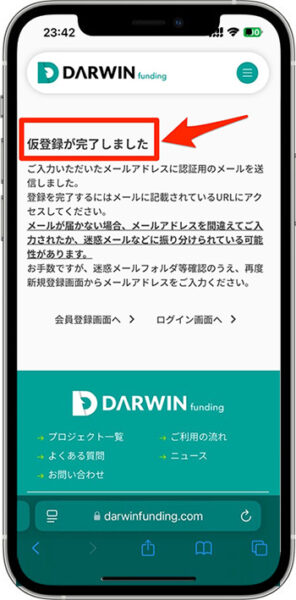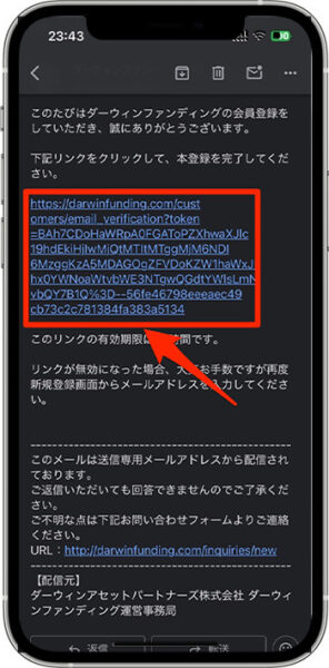 • ダーウィンファンディングから届いたメールに記載されているURLをタップします。