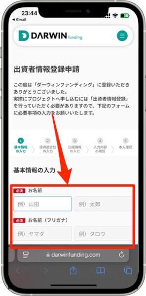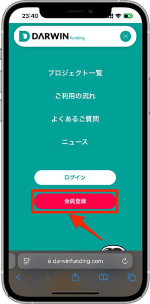 ダーウィンファンディングのキャンペーンで新規登録する流れ