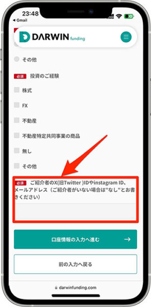 【Step.5】紹介者のXのIDまたはメールアドレスを入力