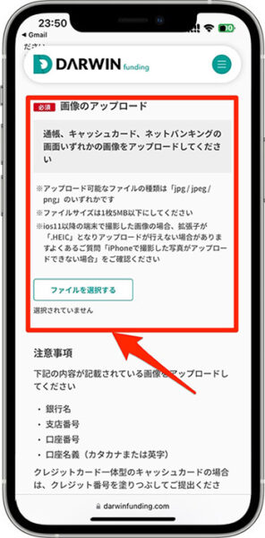 アップロード可能なのは、通帳・キャッシュカード・ネットバンキングの画像のいずれかです!