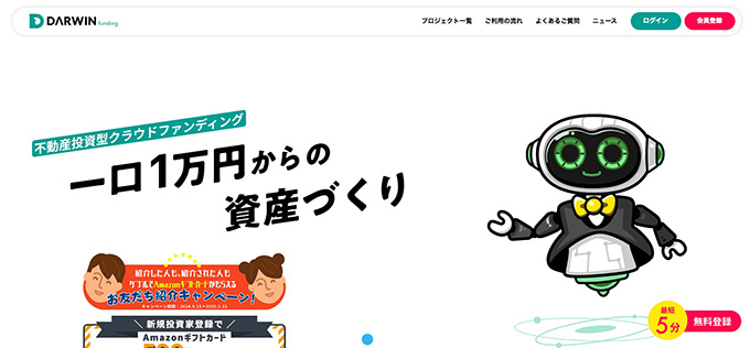 • ダーウィンファンディングは一万円から投資できる不動産投資型クラウドファンディング