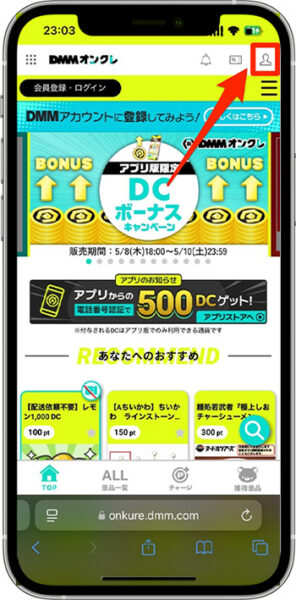 DMMオンクレはWebからも会員登録が可能ですが、500DCもらうには『アプリ』からの登録が条件の一つなのでご注意ください。