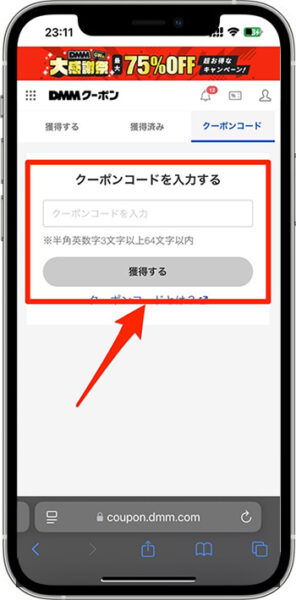 DMMオンクレにてキャンペーンコードを入力すればOKです!『先着300名』が使えるキャンペーンコードなので早めにご利用ください!