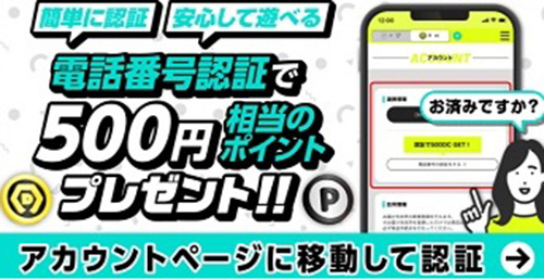 入手条件キャンペーン期間中に電話番号認証を完了させて『1,000DCゲット台』をプレイ