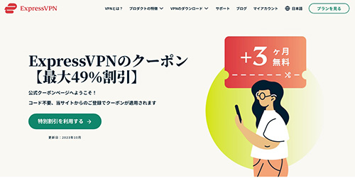 ExpressVPNでは、公式サイトからの契約で最大49%割引になるクーポンを配布しています!