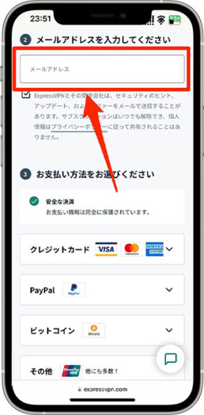 ExpressVPNのクーポンを使って新規契約する方法は上記の通り。