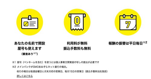 そのほかに、フリーナンス口座も開設できますので、屋号付きの口座が欲しい方も利用しているサービスです。
