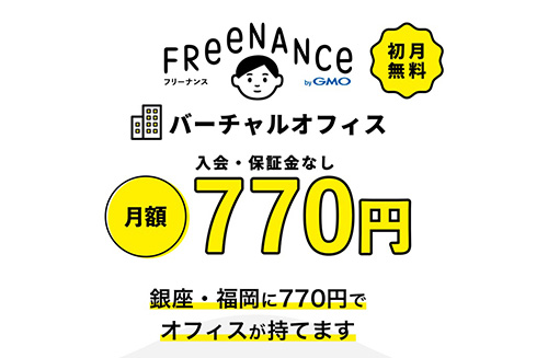 フリーナンスの特徴の3つ目は、『月額770円でバーチャルオフィスの利用が可能』なことです。