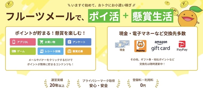 フルーツメールは『ポイ活』と『懸賞に応募』できるサービスです。