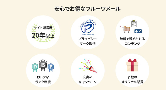 しかしフルーツメールは運営歴が20年以上もあり、プライバシーマークも取得しているので、安心して利用できます。