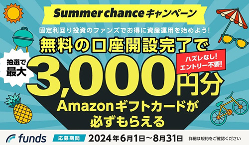 FundsのAmazonギフト券3,000円分がもらえるsummer chanceキャンペーン!