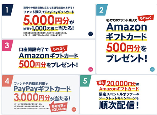 Fundsでは、過去に新規口座開設完了でAmazonギフト券が500円分もらえるキャンペーンを実施していました。