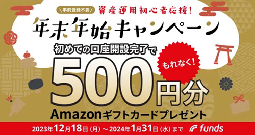 FundsのAmazonギフト券500円分もらえる年末年始キャンペーン!