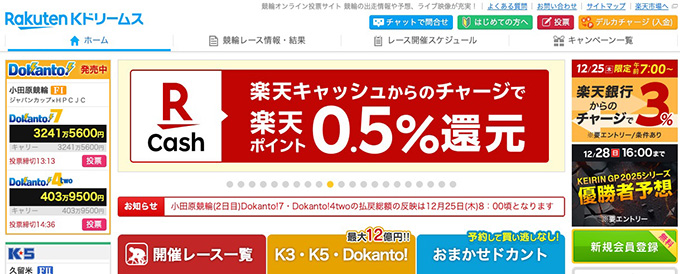 競輪アプリのおすすめ登録キャンペーンの3つ目は『楽天Kドリームス』です。
