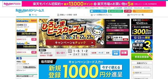 かず新規登録で1,000円分、登録月に1,000円以上車券購入で1,000円分、登録月の翌月に1,000円以上の車券購入でさらに1,000円もらえます!