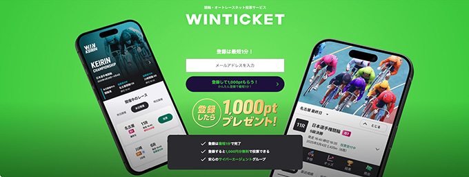 ウィンチケットでは、新規登録で1,000円分のポイントと、投票したポイントの3%が還元されるキャンペーンを開催しています。