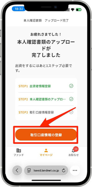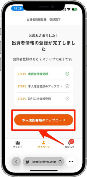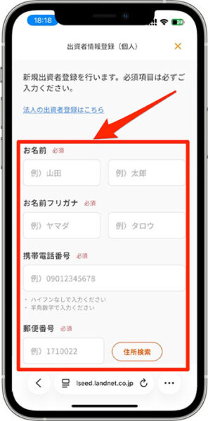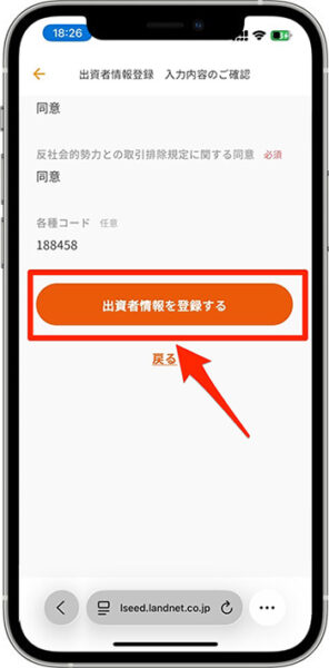 • 入力内容を確認し、『出資者情報を登録する』をタップします。