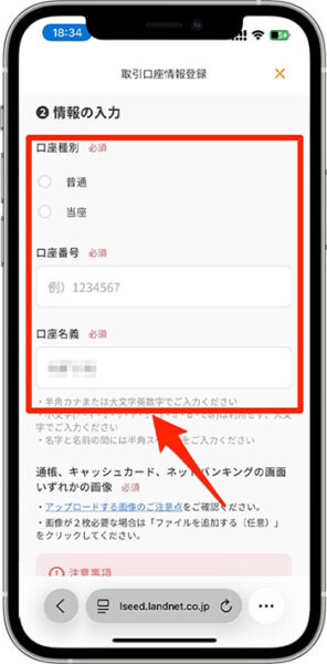 • 通帳、キャッシュカード、ネットバンキングの画面いずれかの画像をアップロードします。