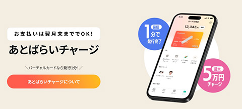 かずワンバンクはプリペイド型の決済サービスで、アプリから簡単に後払いチャージができます!