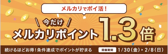 メルカリ|条件達成でメルカリポイント1.3倍ゲットキャンペーン【25/6/9まで】