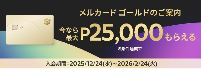 | 対象者 | ・メルカードに初めて申し込む人 ・審査完了から180日以内にメルカードの初期設定を完了 |