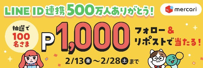 メルカリでLINE ID連携500万人ありがとう!キャンペーンが開催中。