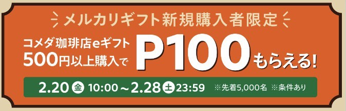 メルカリギフトでコメダ珈琲店eギフト購入でP100還元【26/2/28まで】