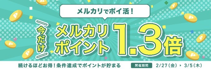 メルカリ|条件達成でメルカリポイント1.3倍ゲットキャンペーン【25/6/9まで】